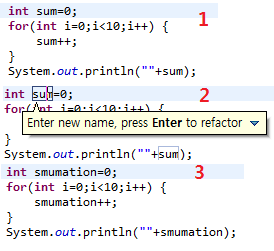 이름을 바꿀 변수나 클래스를 선택하고 alt+shift+r을 누르면 해당변수를 모두 찾아서 이름을 바꿔준다.