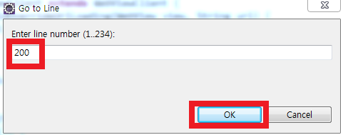 위의 단축키를 누르고 줄번호를 입력 시 해당 줄(Line number)로 커서가 이동합니다.