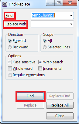 Ctrl+F로 각 이름을 일일이 찾아서 바꾸지 않아도 되고